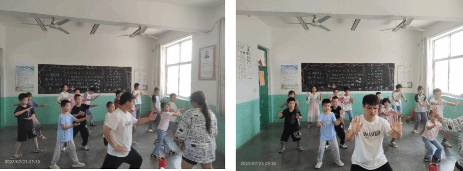 课程之余“小智公益团队”成员带领小朋友们学习太极拳