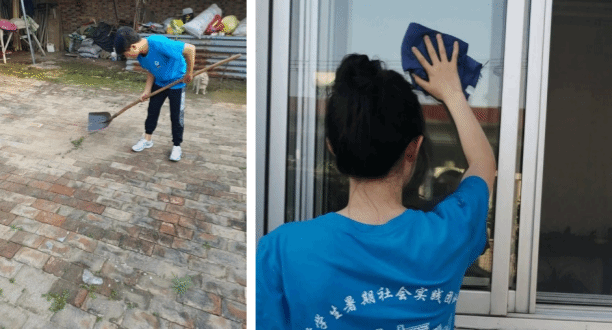 最后队员们进入老人家中,进行了打扫卫生的志愿服务。队员们根据老人家中情况,帮助老人清扫院落,拔除院落杂草,擦洗门框桌面以及将屋内地面拖干净。帮老人创造了一个舒适的居住环境,增加了对老年人群体的关爱,弘扬了社会主义核心价值观。