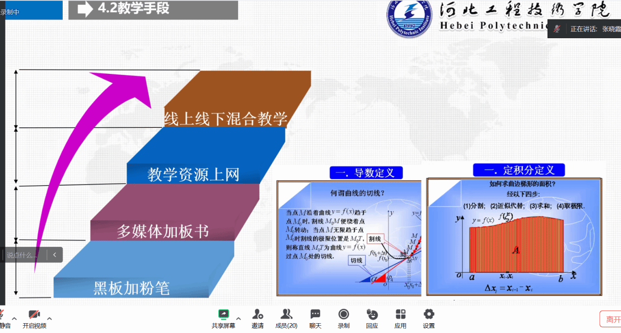 本次比赛采用线上方式进行,邀请我院教学副院长林海霞、孙劼和各系主任担任评委。说课要求重点突出课堂教学创新的理论依据、实施过程以及效果。教学要求教学理念符合新课程改革,课堂教学创新元素表现充分,语言简练,表意准确。