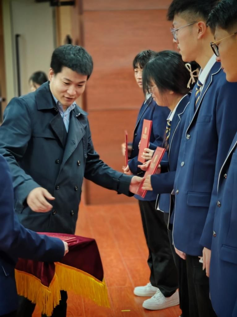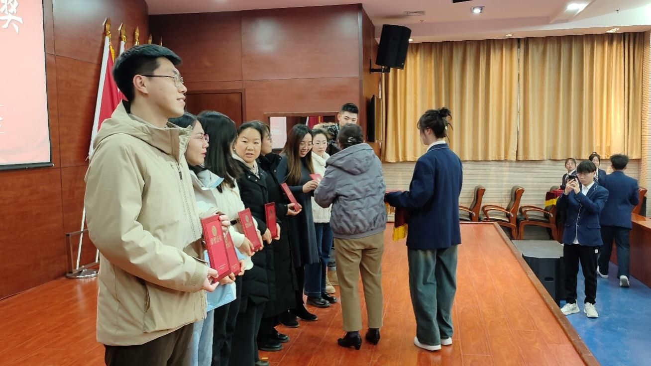 大会第三项,由我院领导及全体辅导员为受表彰的师生进行颁奖。
