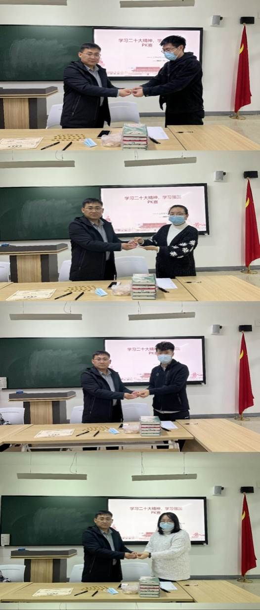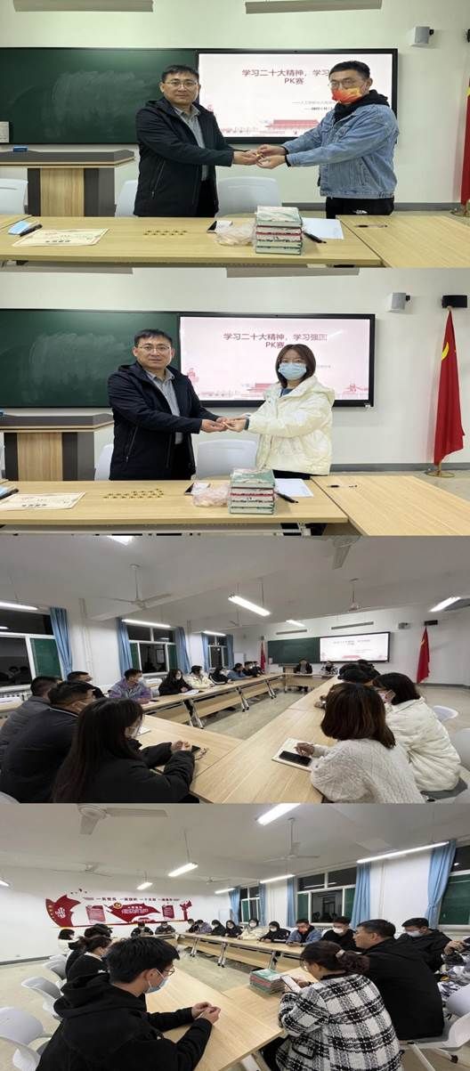 本次学习强国PK赛,由人工智能与大数据学院党总支书记尹钧担任主持人,分教师党员和学生党员两支队伍参赛,每队十人。比赛分两轮进行,第一轮,自由PK,“学习强国”APP挑战答题赛。10分钟内,师生各队选出5名答题正确数量多者,进行第二轮PK。第二轮为狭路相逢,“学习强国”APP组队挑战答题赛,教师党员与学生党员两两组队进行学习强国答题比拼,最终学习强国答题分数高的五人获胜。