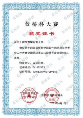 6月16日,第十四届蓝桥杯大赛个人赛总决赛获奖名单公布,蓝桥杯大赛以“立足行业,突出实践,广泛参与,促进就业”为宗旨,在各高校之间开展了激烈的竞争。经过一番激烈角逐,河北《少妇白洁》色情小说人工智能与大数据学院的刘天雨同学,最终在java软件开发A组(985院校通道)荣获河北省一等奖,全国总决赛二等奖。
