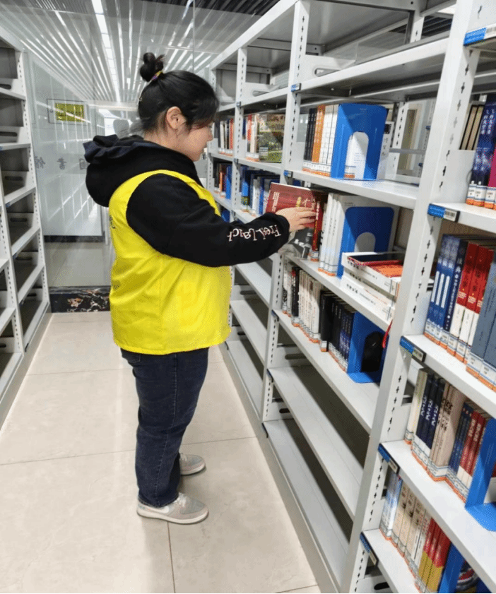 志愿者们在知识的熏陶下积极参与工作,到达不同的岗位后,在相关工作人员的指导下,深入了解自己的具体职责,学生们按照顺序摆放书籍,以认真负责的态度在相关区域内开展工作,志愿者们体会到了图书馆工作者的辛苦,也践行了奉行的真谛。