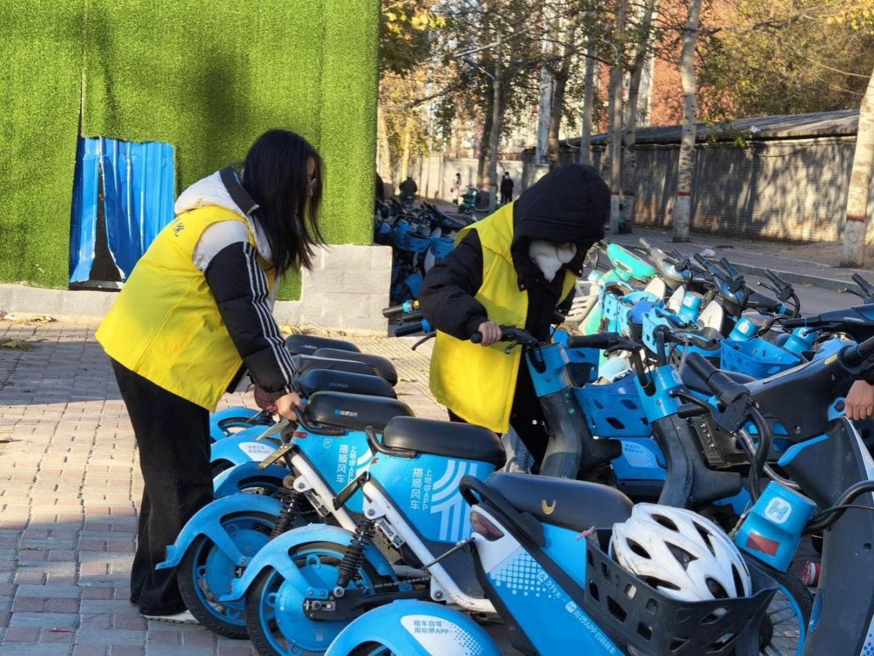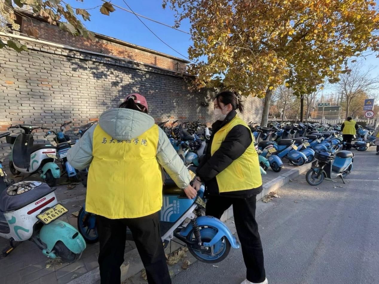 人工智能与大数据学院青年志愿者协会组织学生们于2023年11月29日上午8:00-10:00开展“合理摆放共享单车 争做城市劳动标兵”活动。