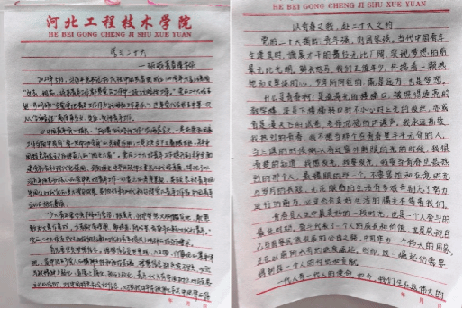 活动期间,学生们认真热情的抒发自己的情感,用自身的文采和笔触描绘对新青年该如何奋斗,该怎样正确的奋斗以及对喜欢读的一本书的感悟与看法。提交的作品中,学生的内容丰富多彩,详细的介绍了自己对主题的理解,充分展示了我院学生对自己未来奋斗方向的清晰规划。