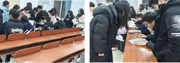 学生们在提交征文时十分热情,工作人员组织现场秩序依次签到,在收集好征文之后,经工作人员评选,最终确定了10篇优秀作品。这些作品不仅内容丰富、形式多样,而且展现了非遗的独特魅力和生命力。