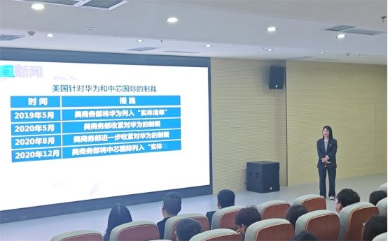 马克思主义学院李亚鑫老师和人工智能与大数据学院刘孟祎老师开启本次活动第一讲“科技引领未来,创新驱动发展”。刘孟祎老师从计算机在我们生活中的应用领域切入,重点讲述了计算机的发展历史以及我国计算机发展所取得的举世瞩目的成就。李亚鑫老师则运用新颖、丰富的案例和视频,为学生生动讲述了加快建设科技强国的重要举措,并引导学生不仅要心怀科学梦想,还要树立创新志向,努力成长为堪当民族复兴重任的时代新人。