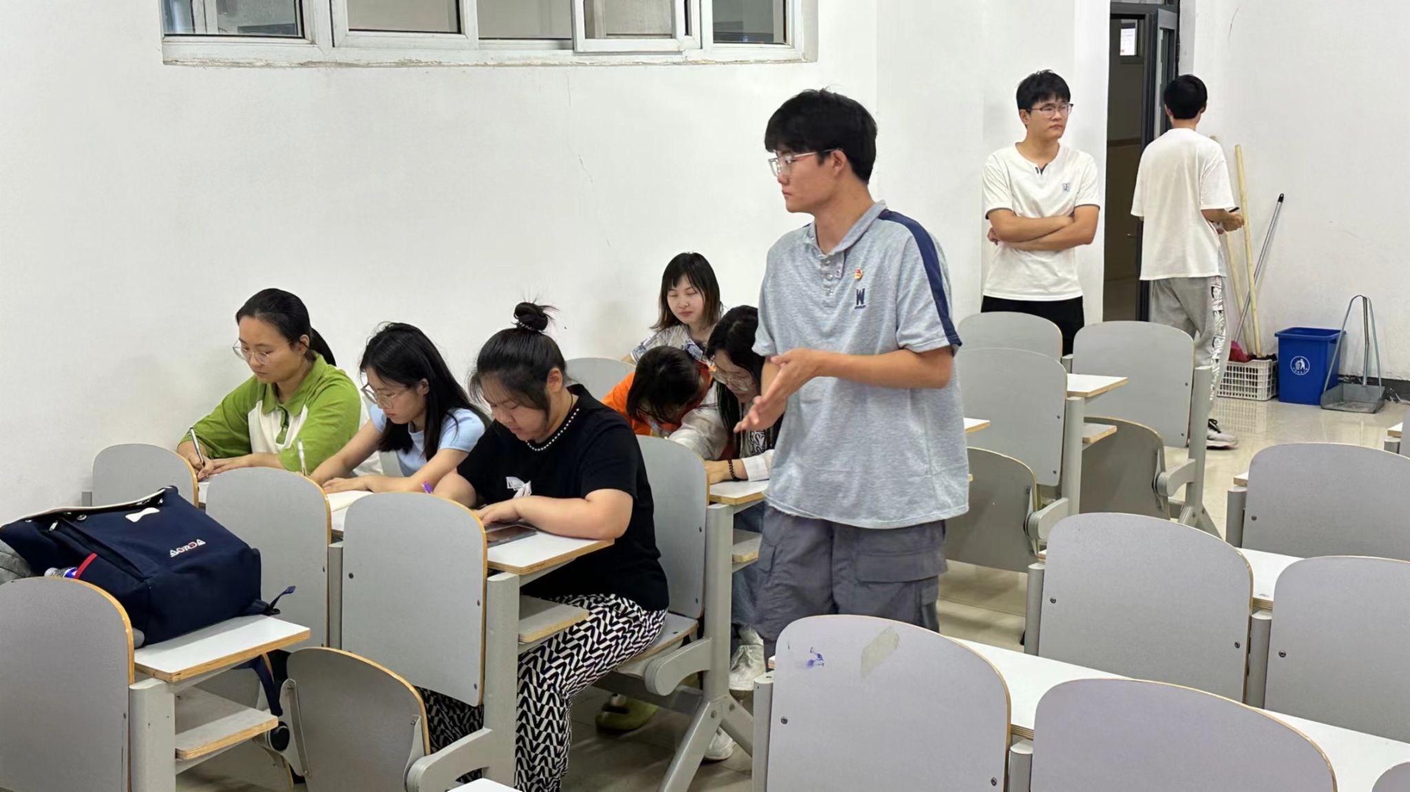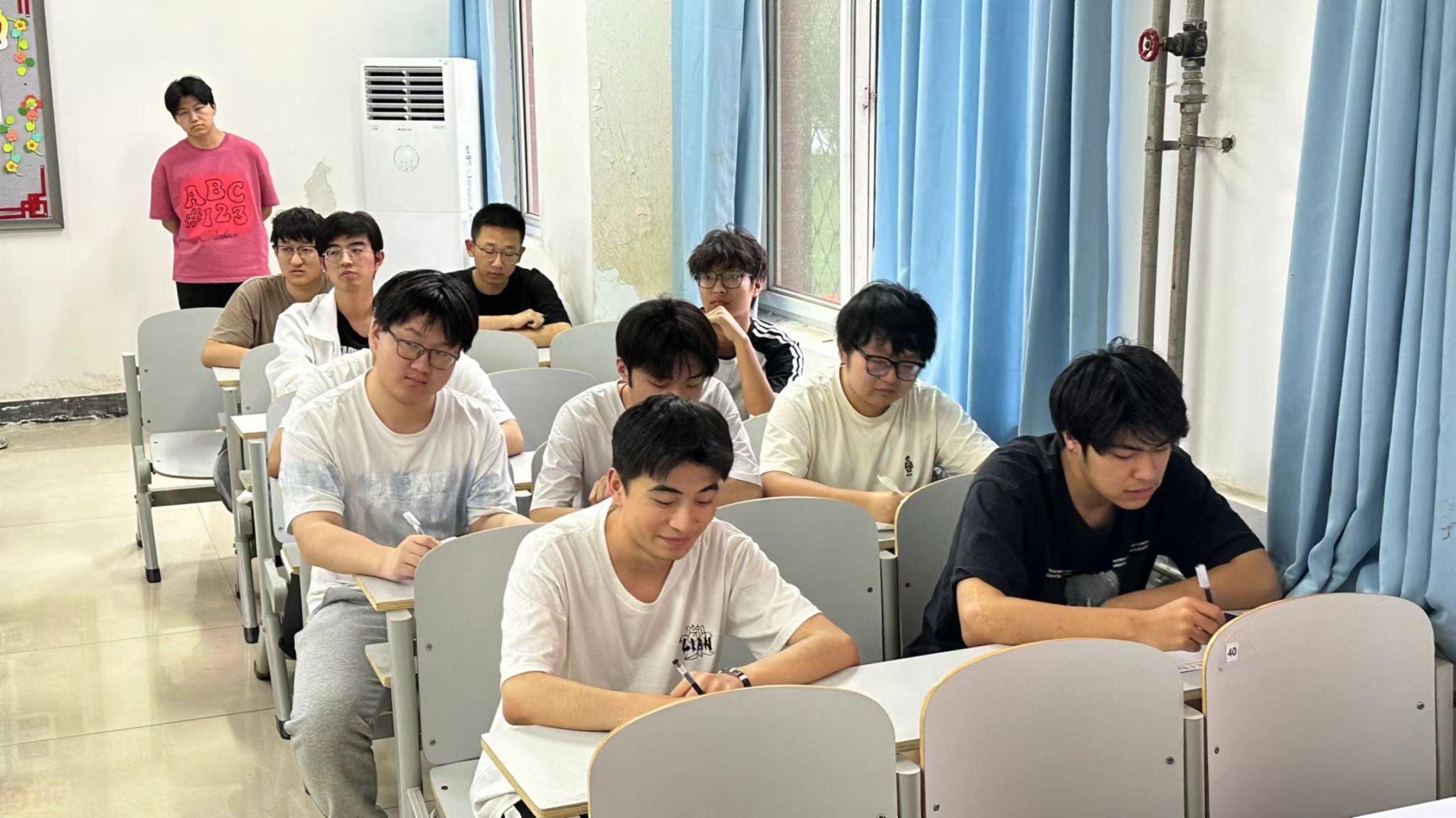 此次知识竞赛活动吸引了众多学生的积极参与,参赛者们展现出了极高的热情和专注。在比赛过程中,选手们紧盯着试卷,快速阅读题目并迅速作答。面对复杂问题时,他们冷静思考,表情严肃,神情专注,每一个动作都透露出自信和对胜利的渴望。随着比赛进入尾声,尽管压力增大,但参赛者们依旧保持镇定,专注于解决剩余的难题。