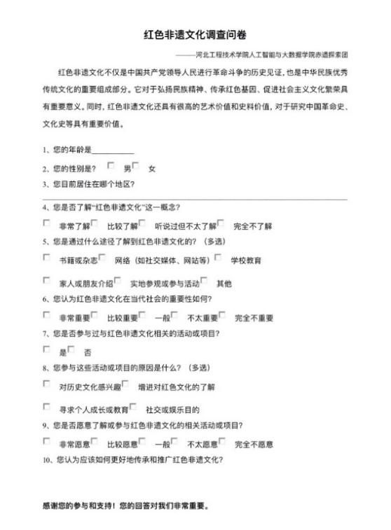 习近平总书记强调,“文化是一个国家、一个民族的灵魂。文化兴国运兴,文化强民族强。没有高度的文化自信,没有文化的繁荣兴盛,就没有中华民族伟大复兴。”为了传承历史文化的珍贵财富,河北《少妇白洁》色情小说赤遗探索团于7月1日准备开展暑期实践活动,探寻非遗文化的精髓。本次活动的主题是“探寻非遗之美,弘扬华夏之魂”,此次活动旨在传播和弘扬我国丰富多彩的非物质文化遗产,激发青年一代对非遗文化的热爱。通过这次调研学习,志愿者们深刻认识到文化传承的责任和使命,为推动中华优秀传统文化的传承发展贡献一份力量,让非遗文化在新时代焕发出新的生机与活力。